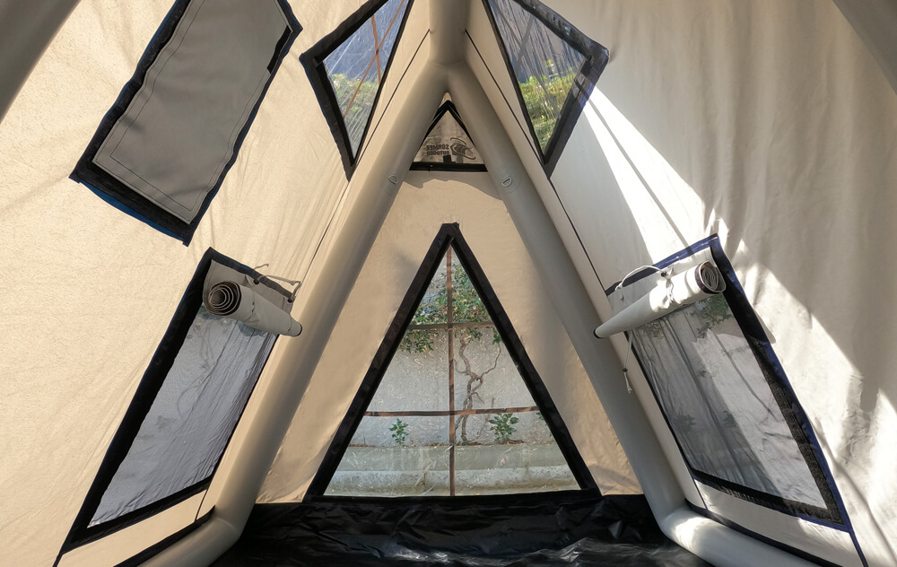 Smart Valve System – No air loss during inflating the tent.With the smart valve system,you can deflate your inflatable tent at the touch of a button.