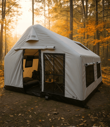 With its 100% waterproof fabric, robust inflatable frame, and stove jack, it can be used safely in all weather conditions. Its panoramic windows provide a bright, airy interior. What’s more, it sets up in just 5 minutes—no technical knowledge required.