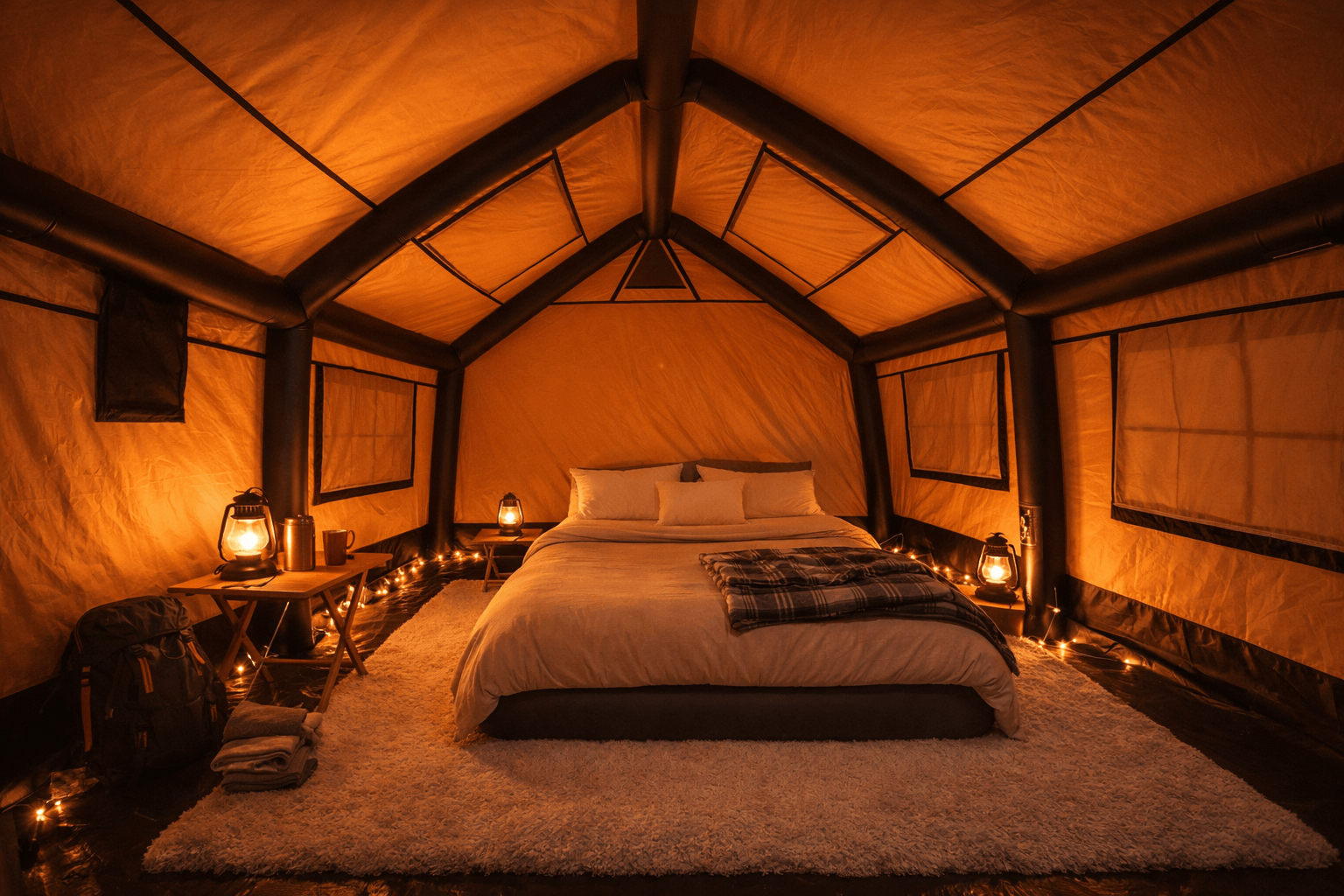 High-Performance Inflatable Structure – Inflatable poles make your tent ready to set up in just a few minutes. Enjoy your vacation by creating a strong and sturdy structure. Safety is our top priority, and our inflatable tents undergo rigorous testing.
