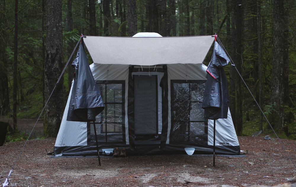 Fixed Front Awning â Covered entrance gives a sheltered entrance to your tent, which prevents rain from dripping in to the living area.