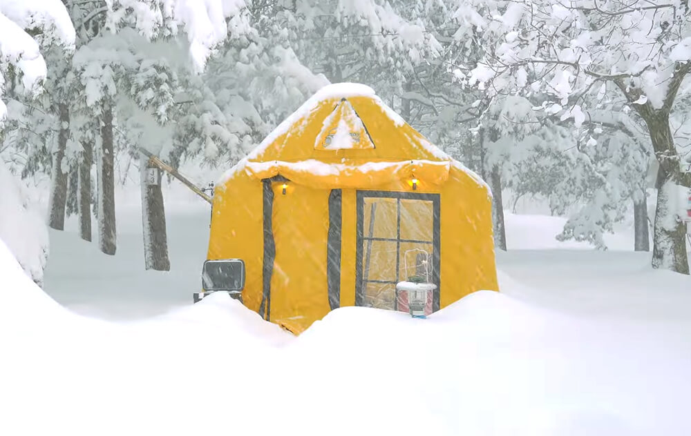 Fireproof Stove Mat (EXTRA OPTION): A fireproof mat designed to allow you to safely use a stove inside the tent, isolating the heat from the stove and protecting the ground. This adds extra safety and comfort during cold weather.