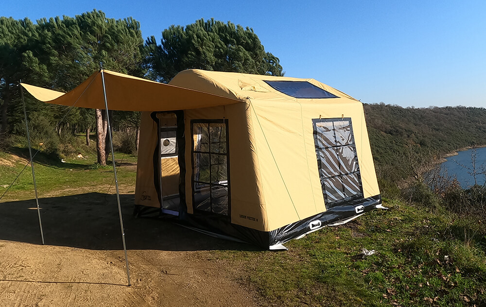 For families of 4 people who love luxury and comfort, LONDON PRESTIGE M is designed for those who seek hotel pleasure in nature, away from home. Enjoy comfortable camping with 4 seasons of use. 100% waterproof fabric is used for harsh weather conditions. It is resistant to heavy rain, snow and wind. Your inflatable tent is ready in 5 minutes. You do not need to know any technical details.